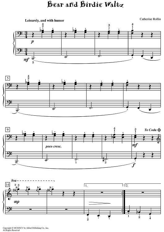 "Bear and Birdie Waltz" Sheet Music by Catherine Rollin