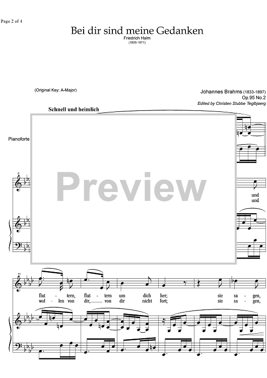 "Bei dir sind meine Gedanken Op.95 No. 2" Sheet Music by Johannes Brahms