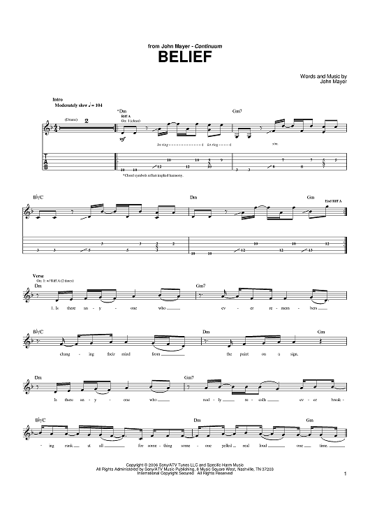 Digital Sheet Music for Belief by John Mayer scored for Guitar Tab; id:396585