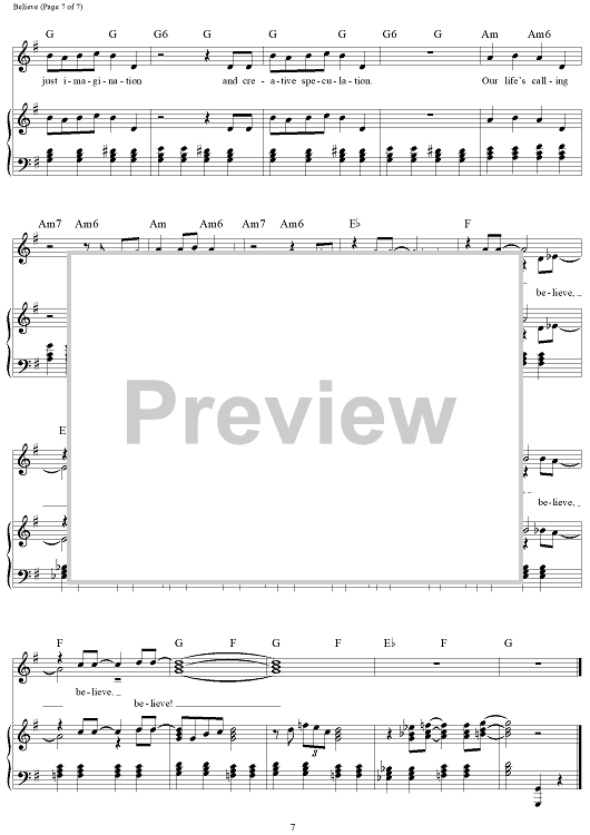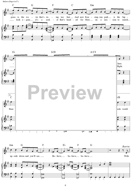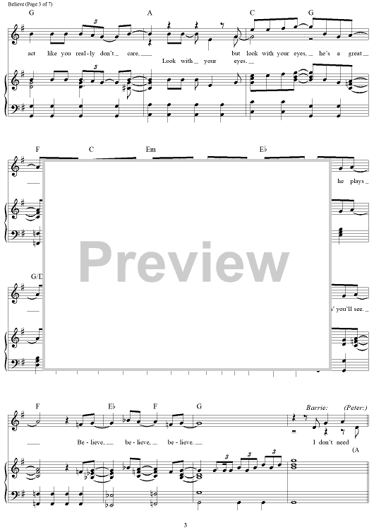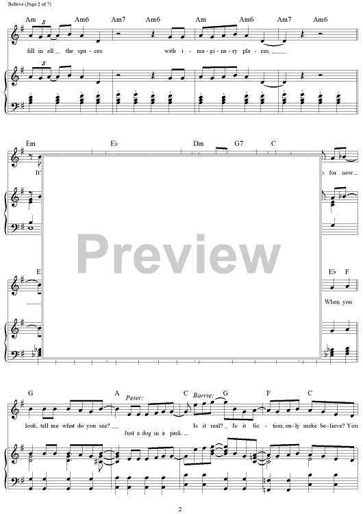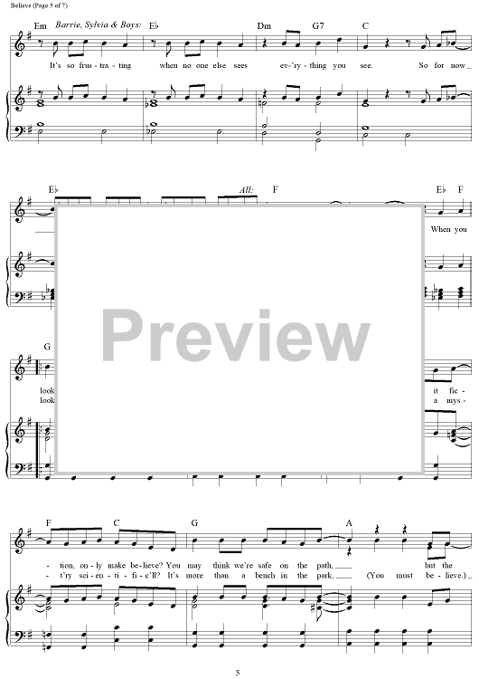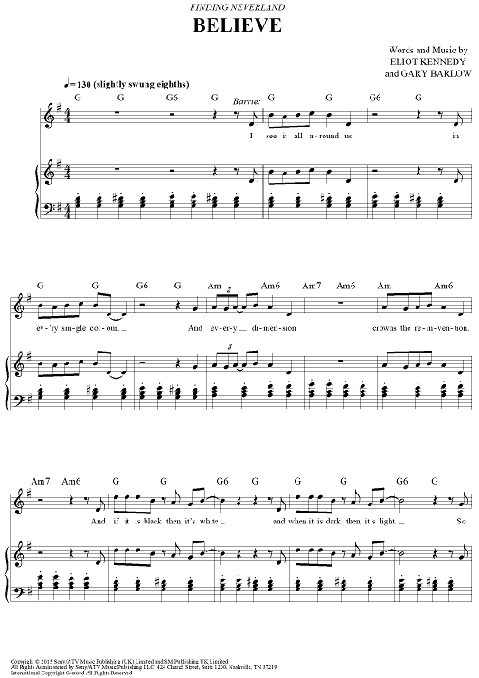 Digital Sheet Music for Believe - from Finding Neverland by Gary Barlow, Eliot Kennedy scored for Piano/Vocal/Chords; id:468989