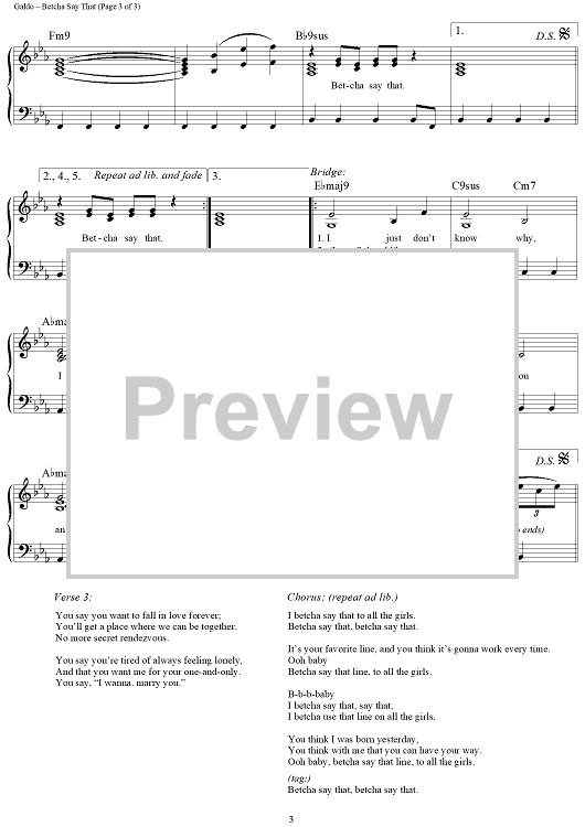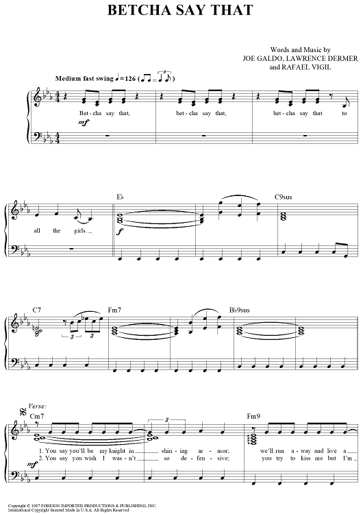 Digital Sheet Music for Betcha Say That by Lawrence Dermer, Miami Sound Machine, Rafael Vigil, Joe Galdo scored for Piano/Vocal/Chords; id:456315