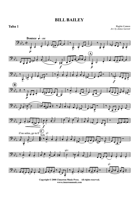 "Bill Bailey - Tuba 1" Sheet Music by Hughie Cannon