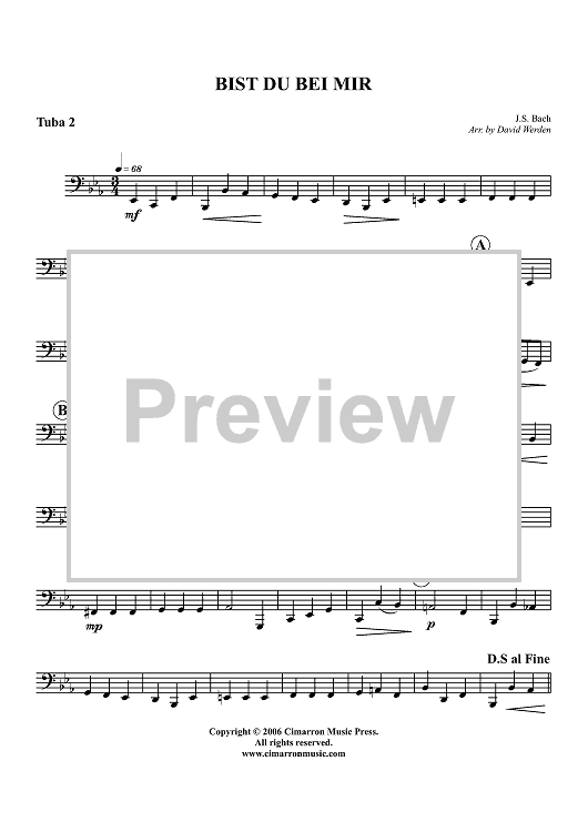 "Bist Du Bei Mir - Tuba 2" Sheet Music by Johann Sebastian Bach