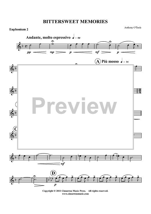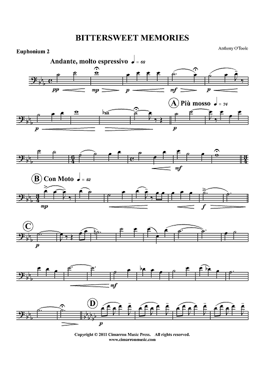 "Bittersweet Memories - Euphonium 2 BC/TC" Sheet Music by Anthony O'Toole