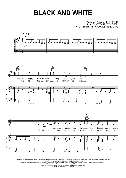 Digital Sheet Music for Black and White by Teddy Geiger, Niall Horan, Julian Bunetta, Scott Harris, Alexander Izquierdo scored for Piano/Vocal/Chords; id:468214