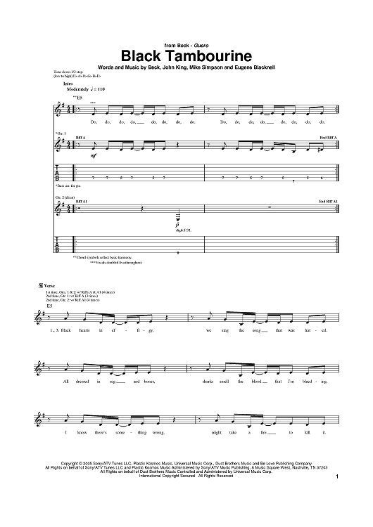 Digital Sheet Music for Black Tambourine by John King, Beck, Eugene Blacknell, Mike Simpson scored for Guitar Tab; id:385191