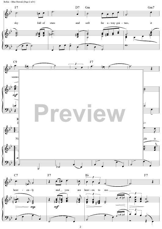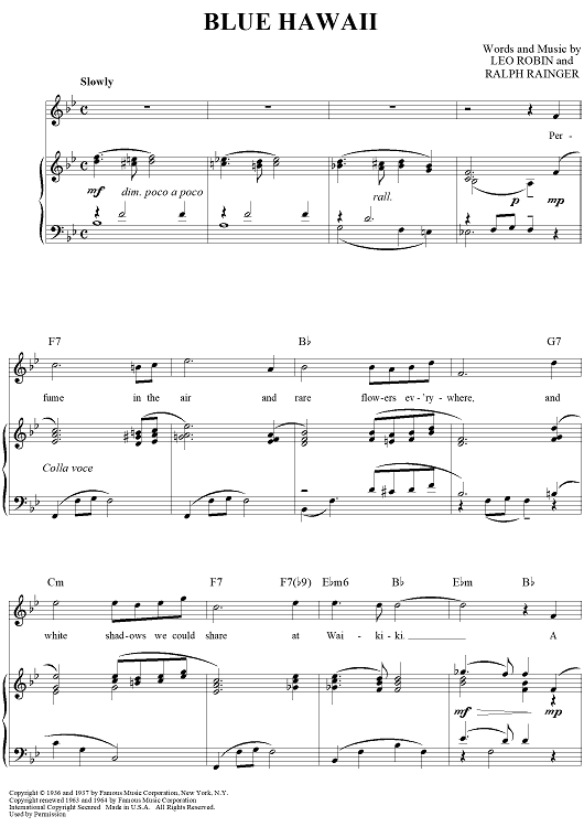 Digital Sheet Music for Blue Hawaii by Elvis Presley, Leo Robin, Ralph Rainger scored for Piano/Vocal/Chords; id:366749