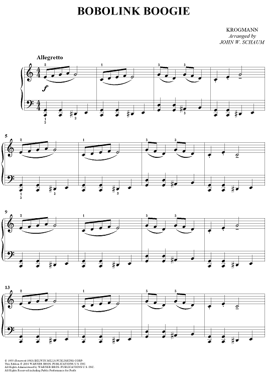 Digital Sheet Music for Bobolink Boogie by , John W. Schaum, C. W. Krogmann scored for Easy Piano/Vocal; id:468969
