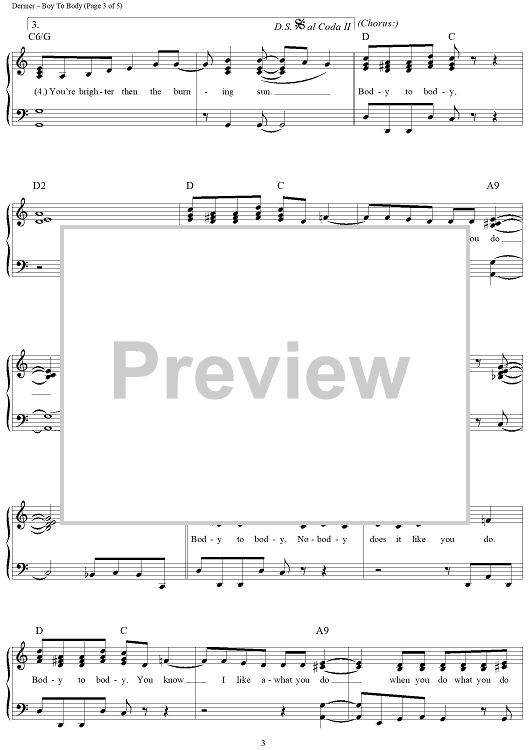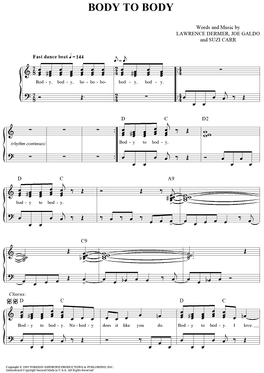 Digital Sheet Music for Body To Body by Lawrence Dermer, Miami Sound Machine, Joe Galdo, Suzi Carr scored for Piano/Vocal/Chords; id:456314