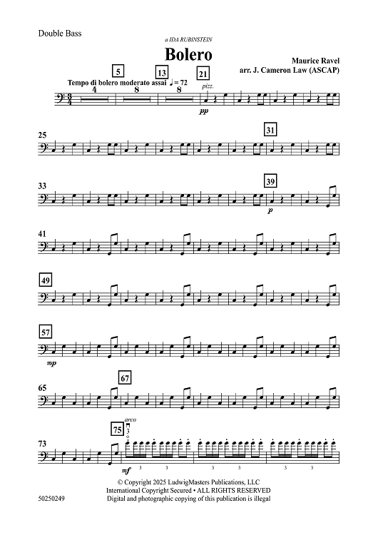 Digital Sheet Music for Bolero for Strings - Double Bass by Maurice Ravel, J. Cameron Law scored for String Orchestra; id:508357