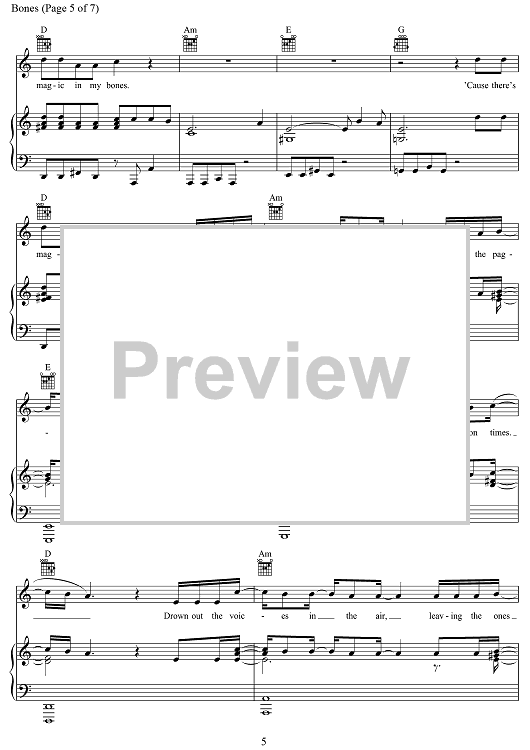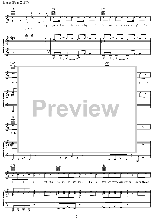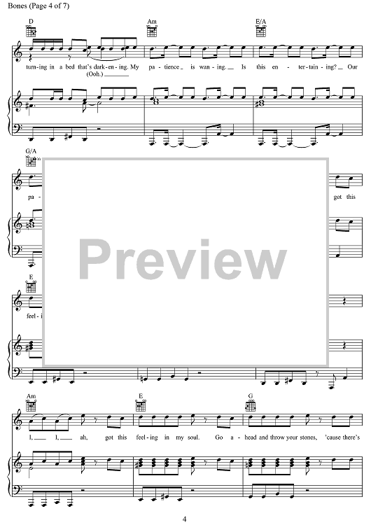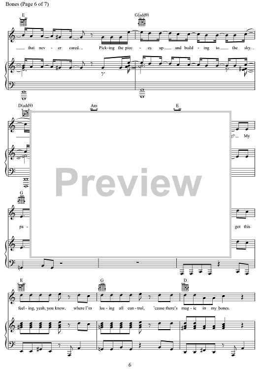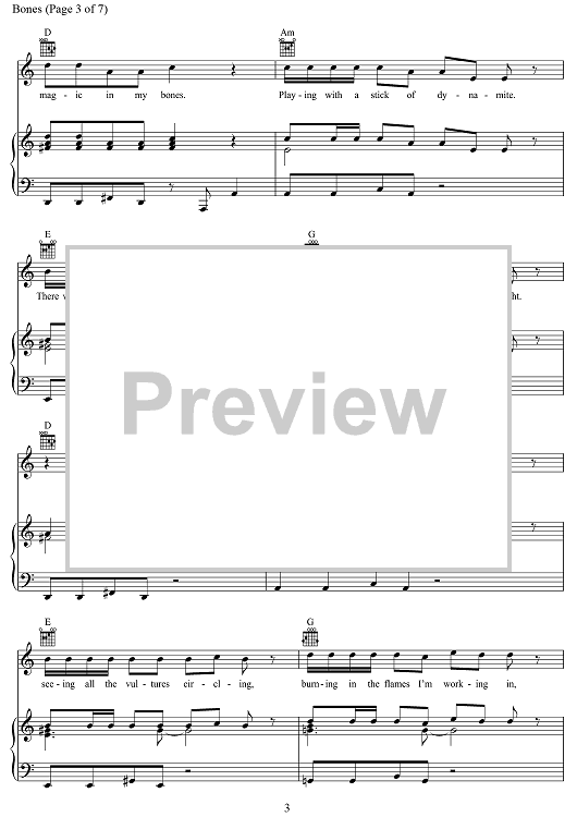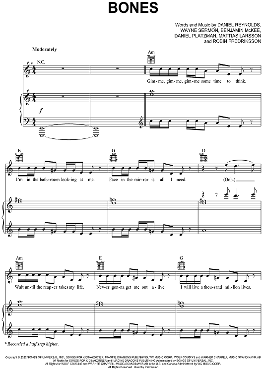 Digital Sheet Music for Bones by Daniel Reynolds, Benjamin McKee, Imagine Dragons, Daniel Platzman, Wayne Sermon, Robin Fredriksson, Mattias Larsson scored for Piano/Vocal/Chords; id:497143