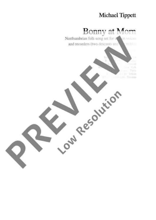 Digital Sheet Music for Bonny at Morn - Score by Sir Michael Tippett scored for Children's Choir (mez) And 3 Recorders (ssa); id:484145
