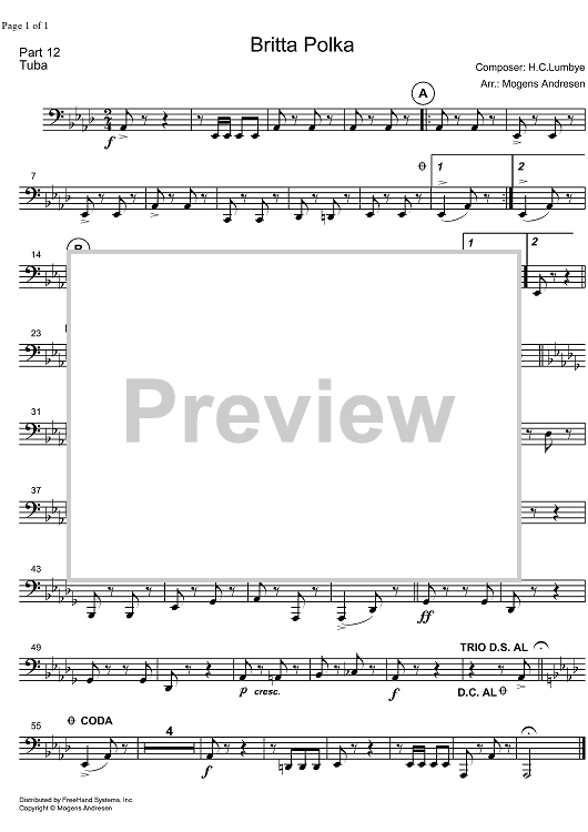 "Britta Polka - Tuba" Sheet Music by Hans Lumbye