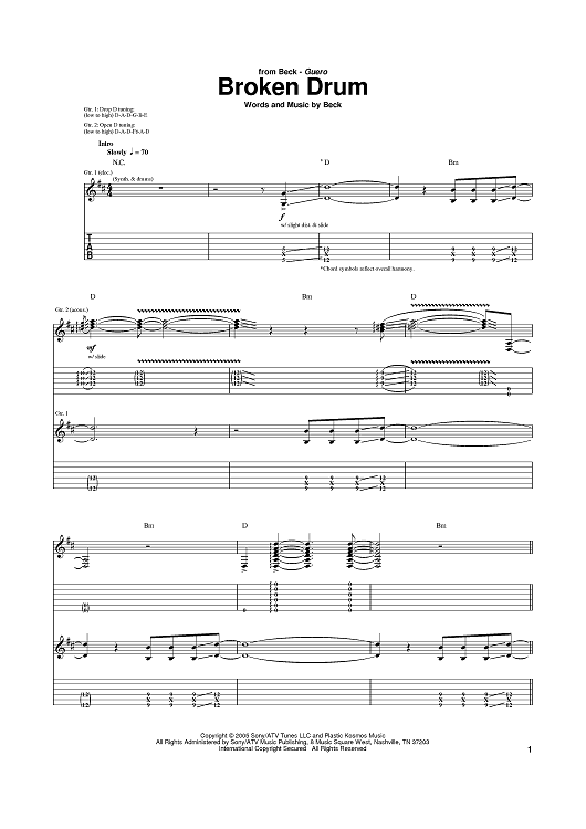 Digital Sheet Music for Broken Drum by Beck scored for Guitar Tab; id:385193
