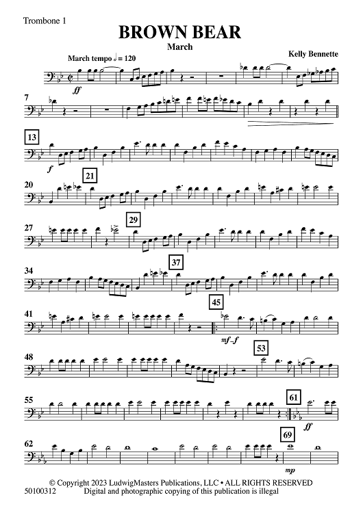 Digital Sheet Music for Brown Bear - Trombone 1 by Kelly Bennette scored for Concert Band; id:509656