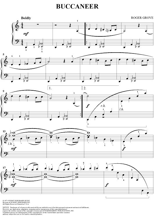 Digital Sheet Music for Buccaneer by Roger Grove scored for Easy Piano; id:287389