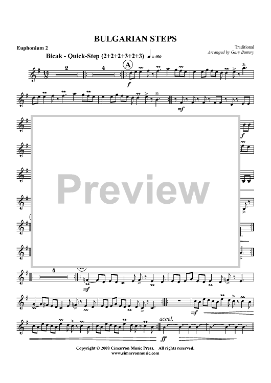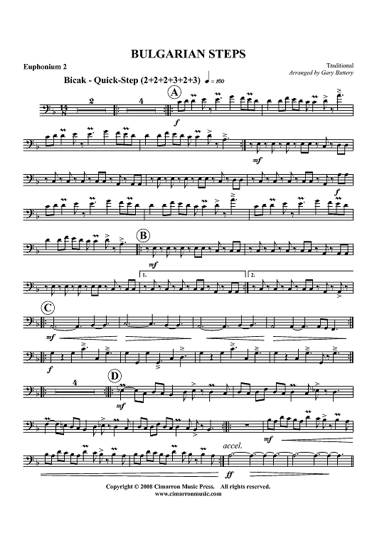"Bulgarian Steps - Euphonium 2 BC/TC" Sheet Music by Traditional