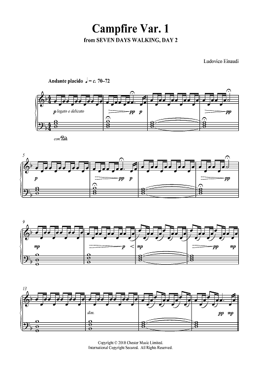 Digital Sheet Music for Campfire Var. 1, from Seven Days Walking, Day 2 by Ludovico Einaudi scored for Piano Solo; id:467510