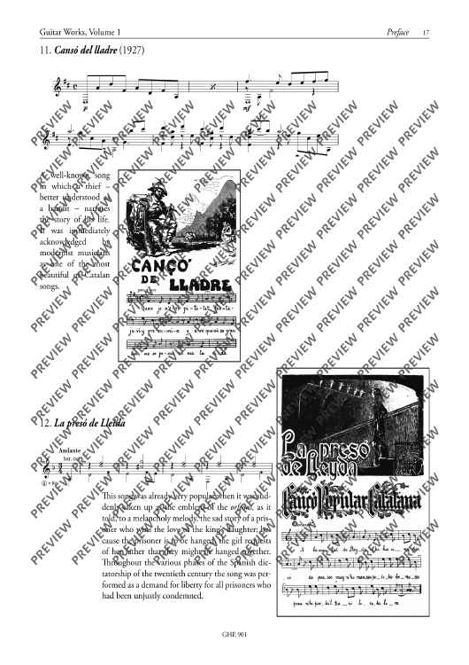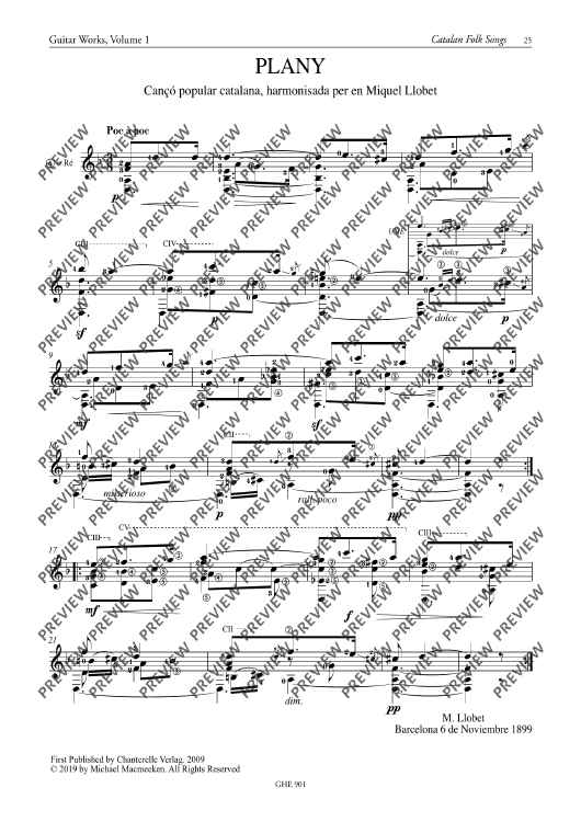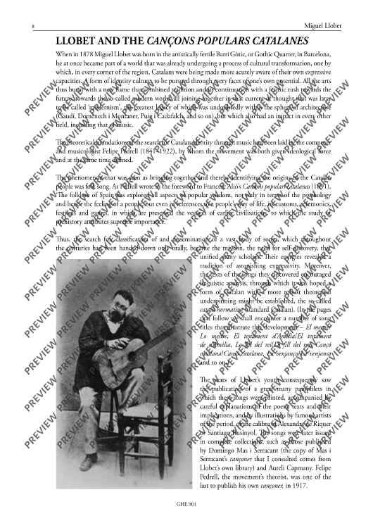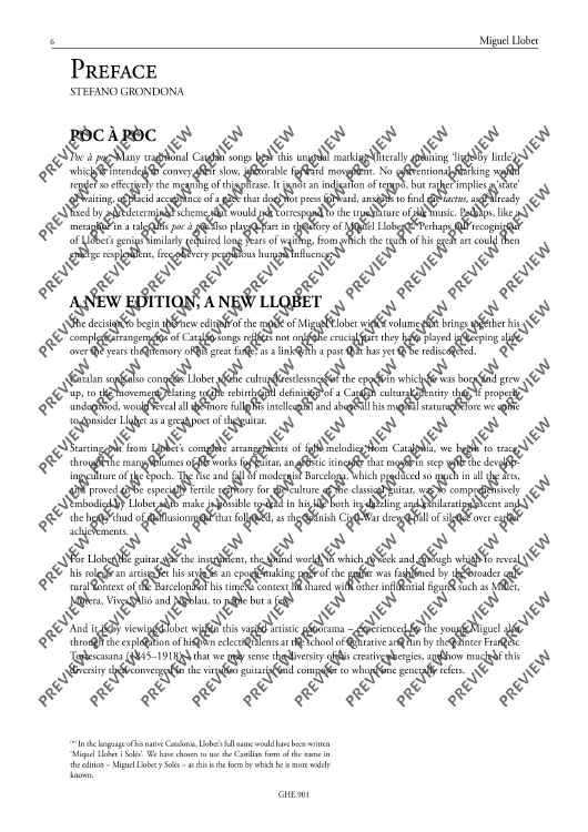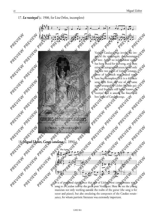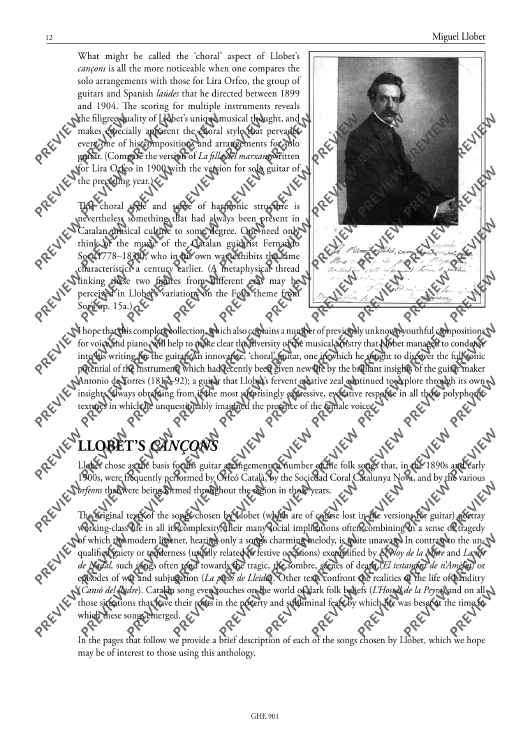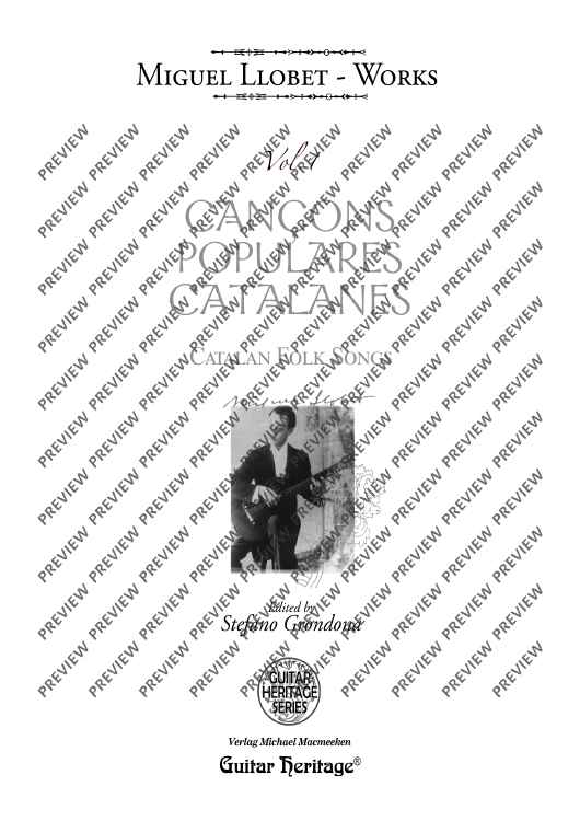 This edition of the Catalan folk songs is more complete and contains more works than in any other edition. It is particularly generously documented. There is also an illustrated 12 page chronology of Llobet’s life with 61 rare photographs and documents. As in all our editions both a detailed documented critical commentary and copious notes are included. Catalan song also connects Llobet to the cultural restlessness of the epoch in which he was born and grew up, to the movement relating to the birth and definition of a Catalan cultural identity, which, when properly understood, was to reveal all the more fully Llobet’s intellectual and above all his musical stature, before we came to consider him a great poet of the guitar as well.