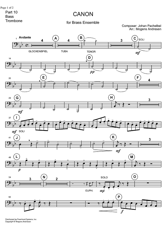 Digital Sheet Music for Canon in D - Bass Trombone by Johann Pachelbel, Mogens Andresen scored for Brass Ensemble; id:324835