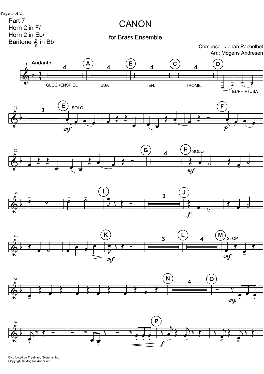 Digital Sheet Music for Canon in D by Johann Pachelbel, Mogens Andresen scored for Brass Ensemble; id:324832