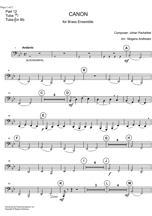Digital Sheet Music for Canon in D by Johann Pachelbel, Mogens Andresen scored for Brass Ensemble; id:324838