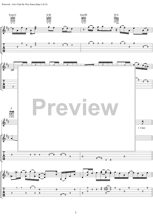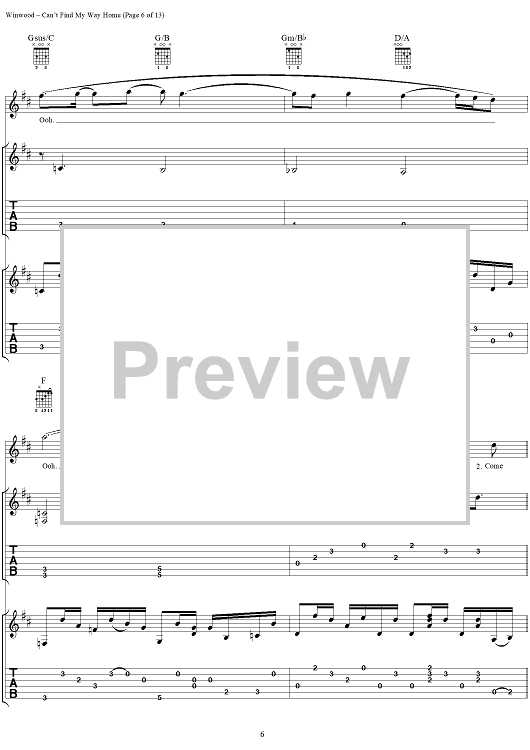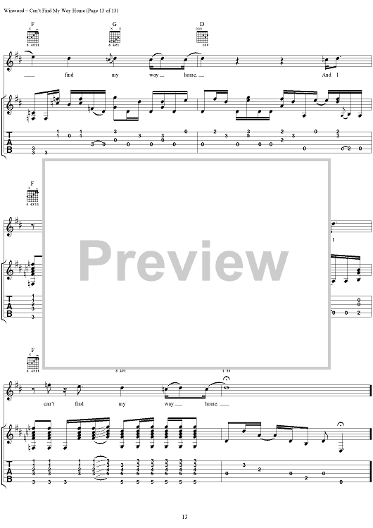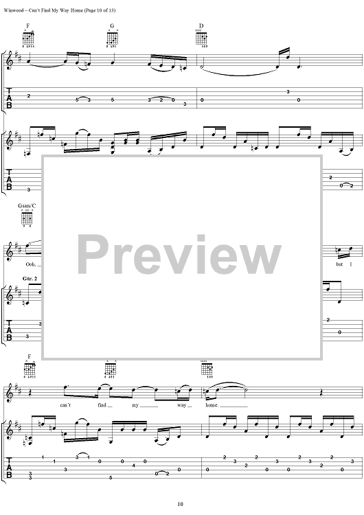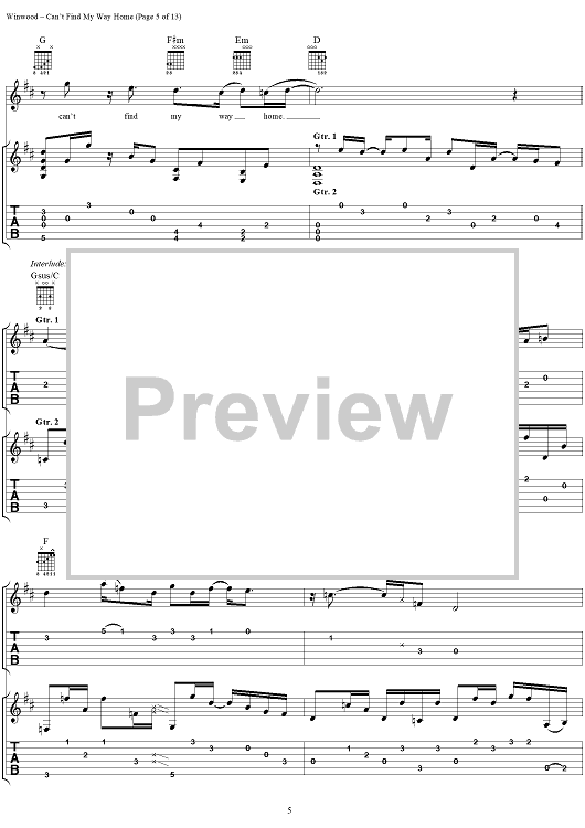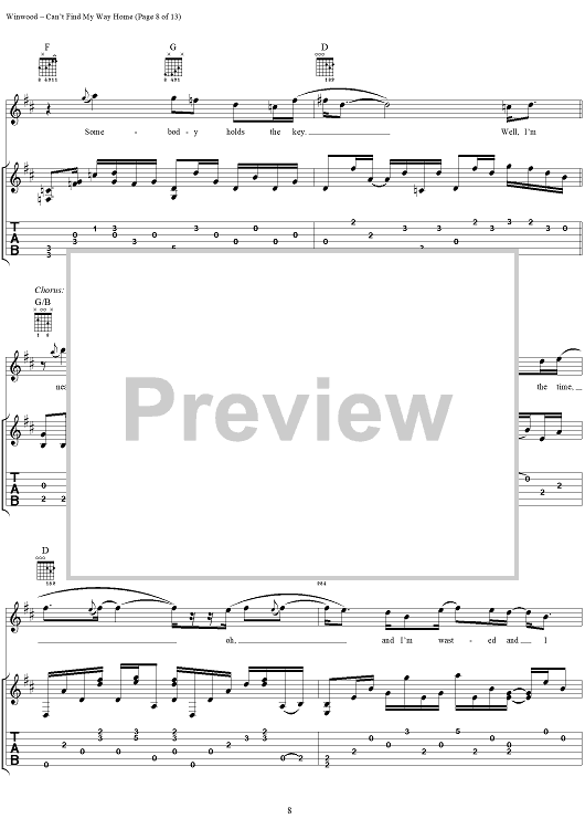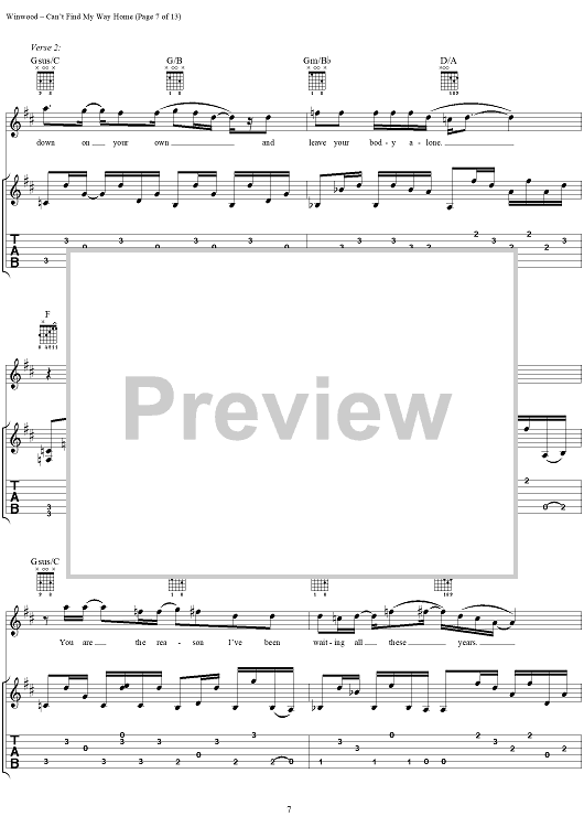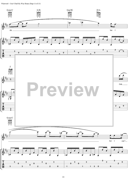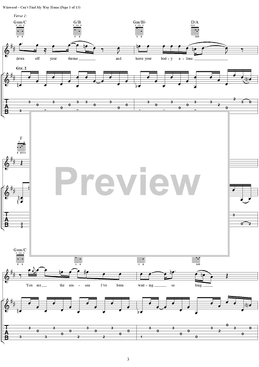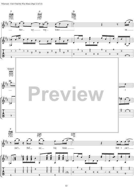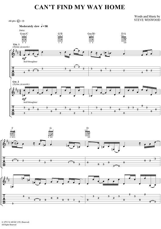 "Can't Find My Way Home" Sheet Music by Steve Winwood