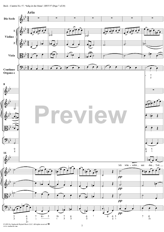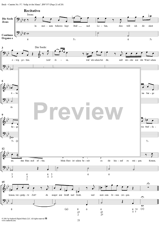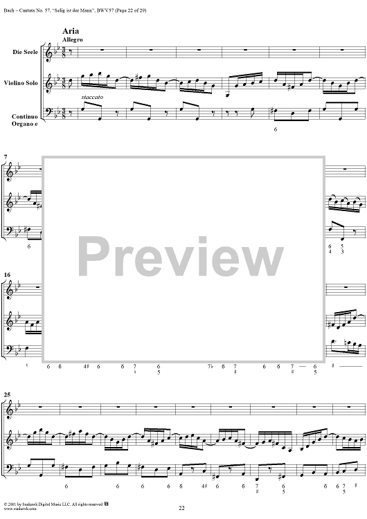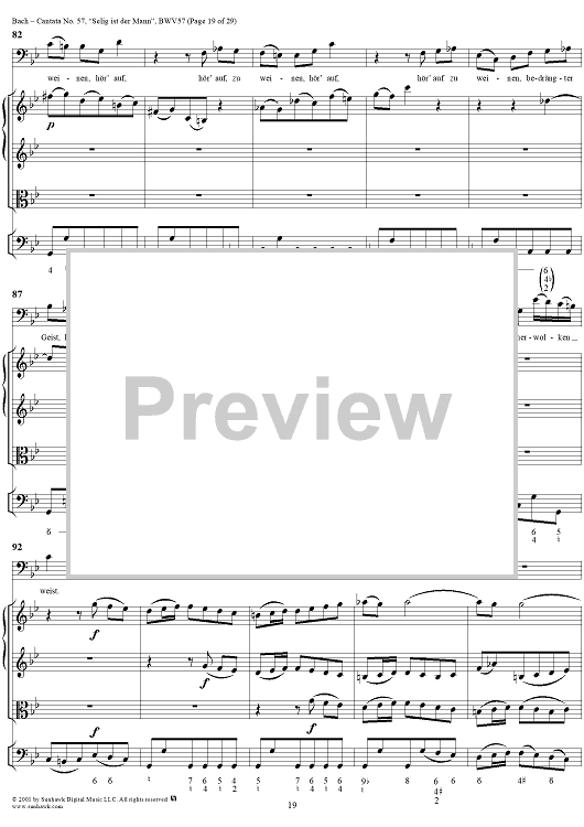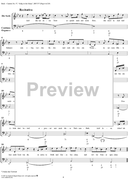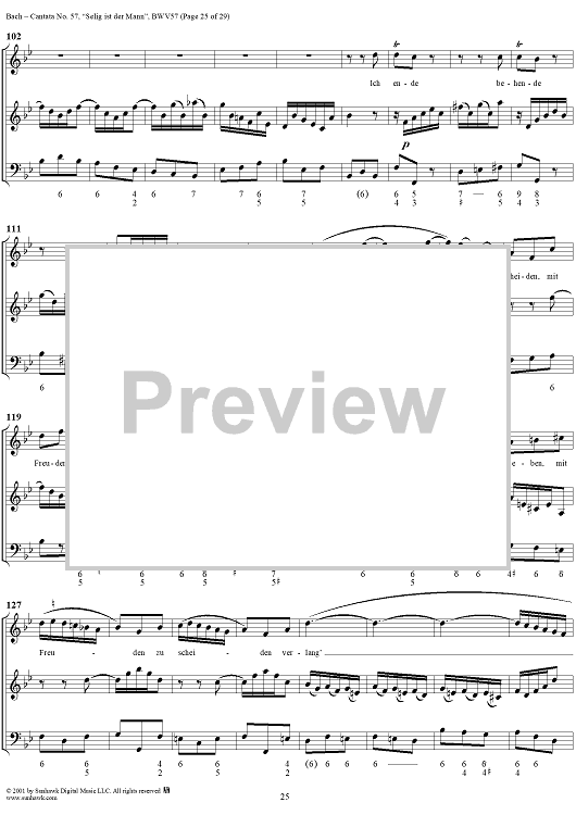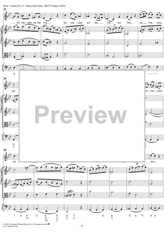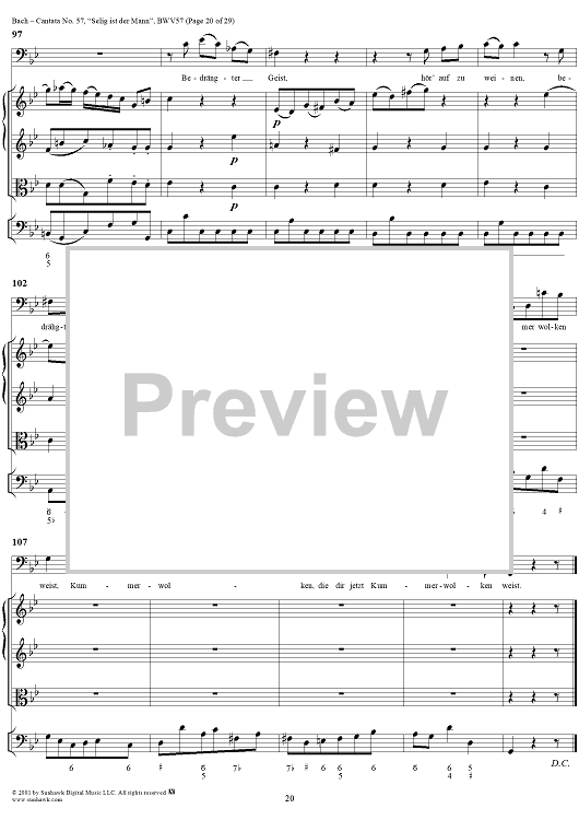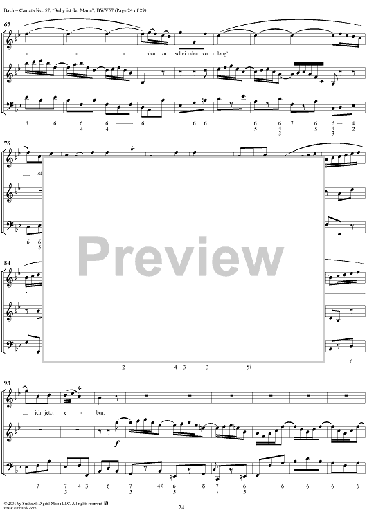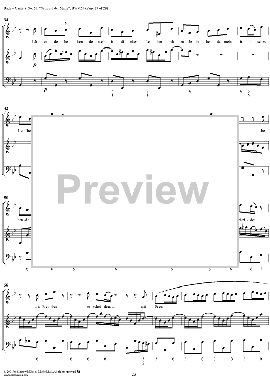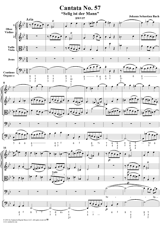 Digital Sheet Music for Cantata No. 57: Selig ist der Mann, BWV57 by Johann Sebastian Bach scored for Full Score; id:259477