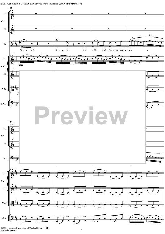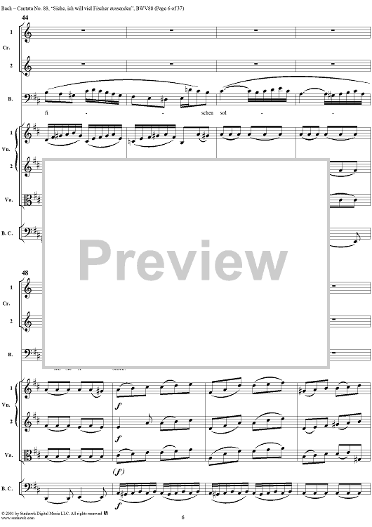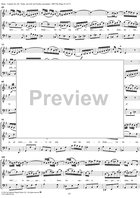 Digital Sheet Music for Cantata No. 88: Siehe, ich will viel Fischer aussenden, BWV88 by Johann Sebastian Bach scored for Full Score; id:255869