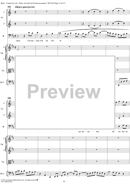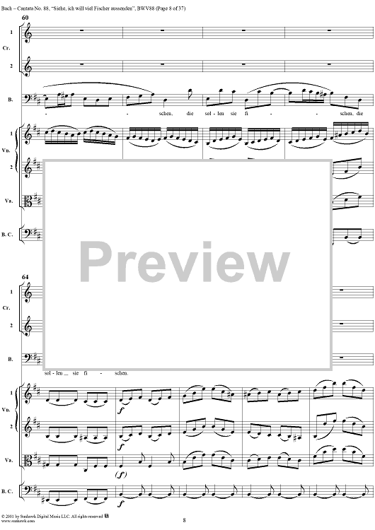 "Cantata No. 88: Siehe, ich will viel Fischer aussenden, BWV88" Sheet Music by Johann Sebastian Bach