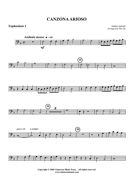 Digital Sheet Music for Canzon Ariosos - Euphonium 2 BC/TC by Tim Olt, Andrea Gabrieli scored for Tuba Quartet; id:413736