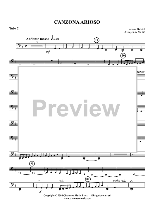 Digital Sheet Music for Canzon Ariosos - Tuba 2 by Tim Olt, Andrea Gabrieli scored for Tuba Quartet; id:413738
