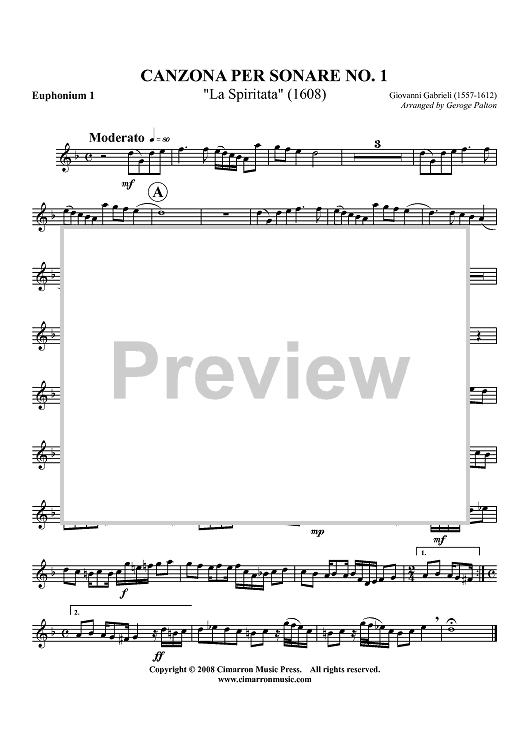 "Canzon per Sonare No. 1 "La Spiritata" (1608) - Euphonium 1 BC/TC" Sheet Music by Giovanni Gabrieli