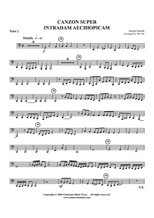 Digital Sheet Music for Canzon Super Intradam Aechiopicam - Tuba 2 by Samuel Scheidt, Tim Olt scored for Tuba Quartet; id:413775