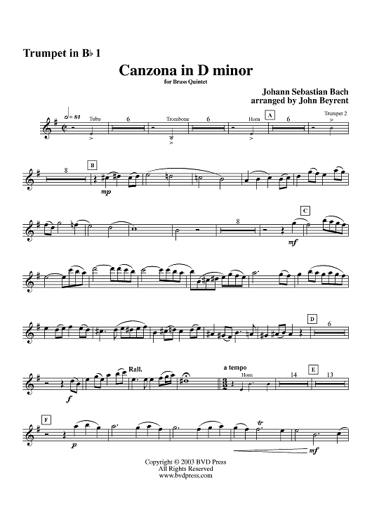 "Canzona in D Minor - Trumpet 1" Sheet Music by Johann Sebastian Bach