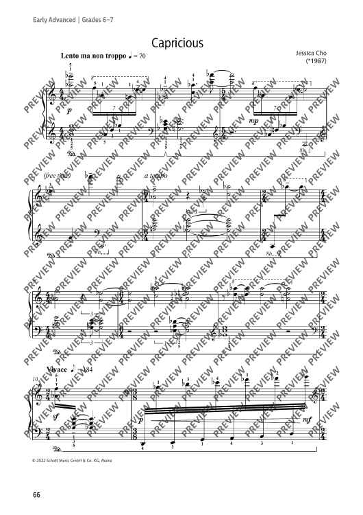 Digital Sheet Music for Capricious by Jessica Cho scored for Piano; id:499806