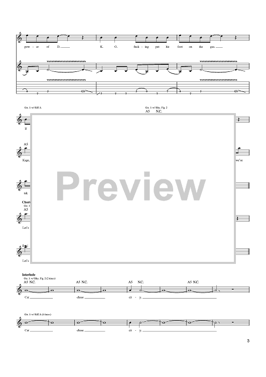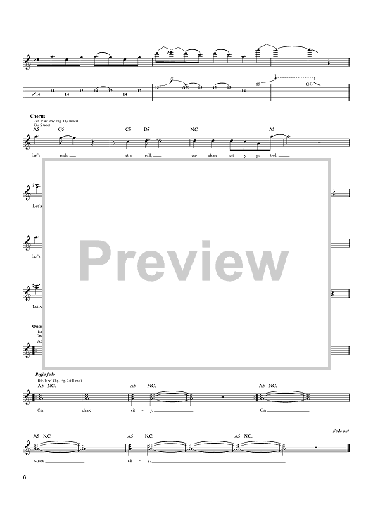 Digital Sheet Music for Car Chase City by John King, Jack Black, Kyle Gass, John S. Konesky, John Spiker, Tenacious D scored for Guitar Tab; id:401992