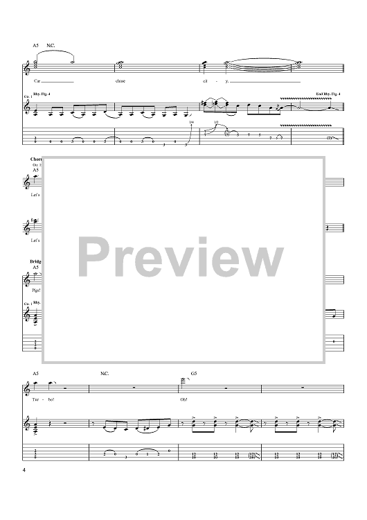 "Car Chase City" Sheet Music by Tenacious D