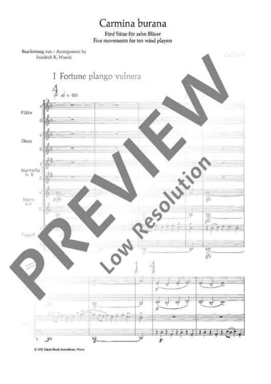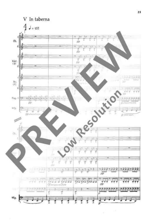 Digital Sheet Music for Carmina Burana - Score by Carl Orff scored for 2 Flutes (2. Also Piccolo), 2 Oboes (2. Also English Horn), 2 Clarinets, 2 French Horns, Bassoon, Contrabassoon (Also 2. Bassoon; id:473756