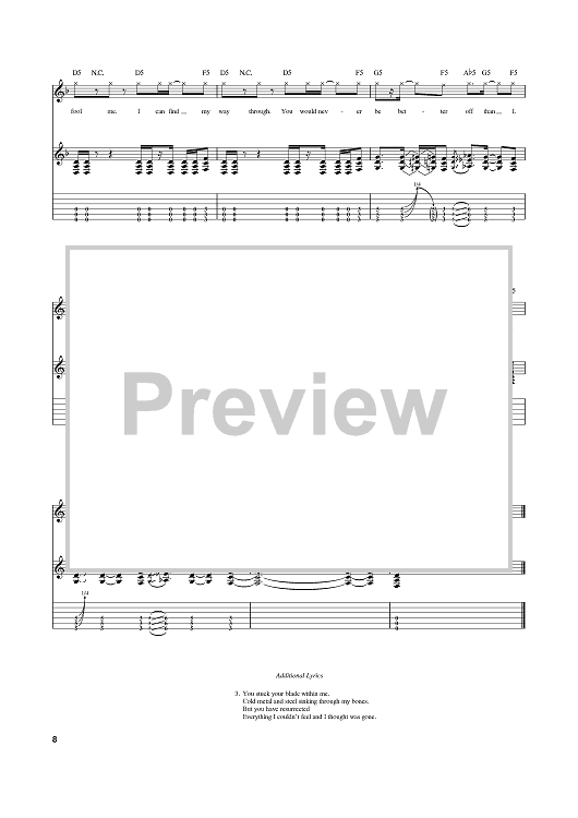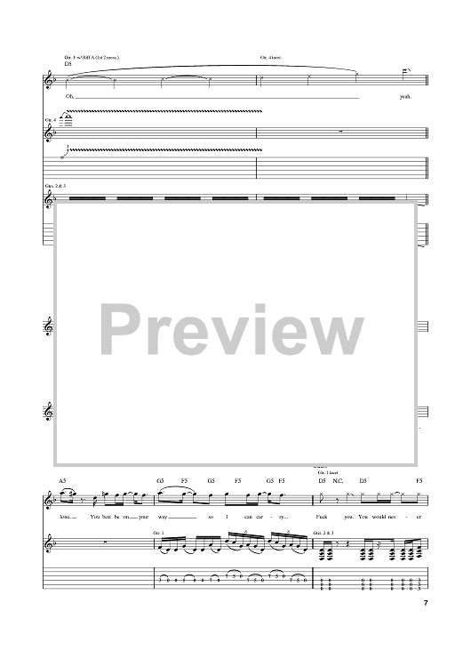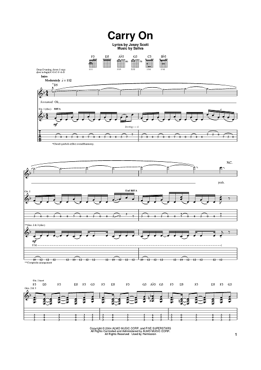 Digital Sheet Music for Carry On by Saliva, Josey Scott scored for Guitar Tab; id:383152
