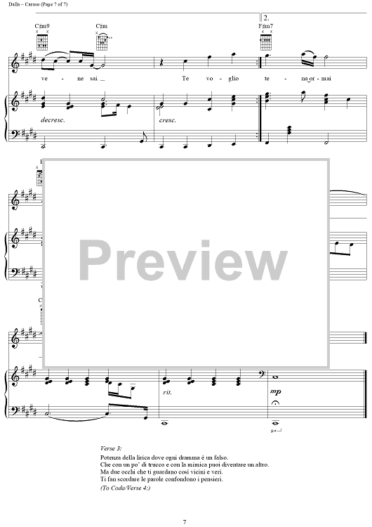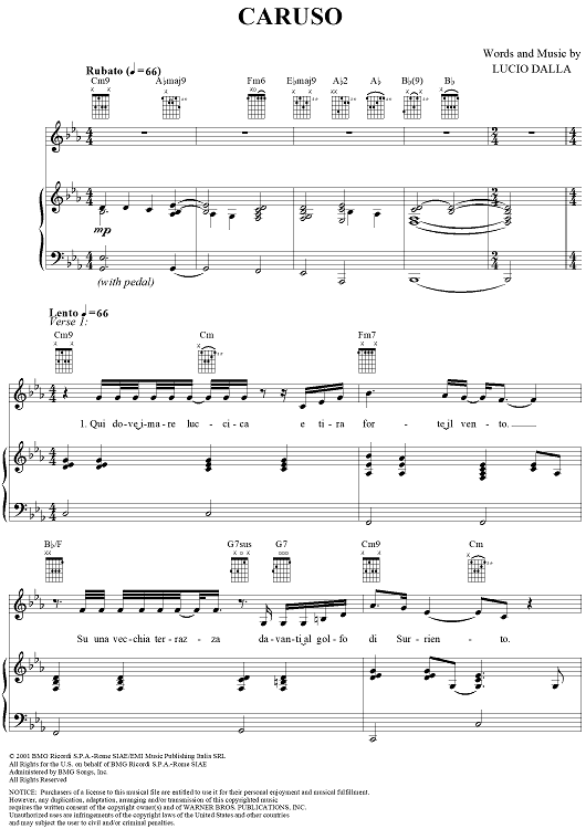 Digital Sheet Music for Caruso by Lucio Dalla, Josh Groban scored for Piano/Vocal/Chords; id:307425