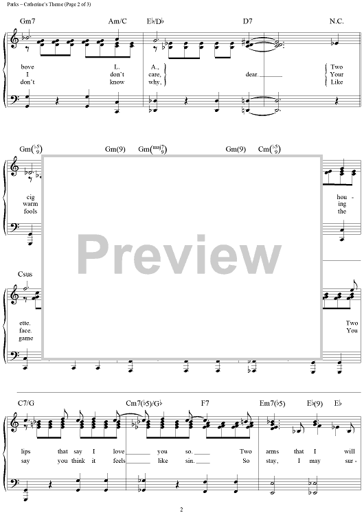 Digital Sheet Music for Catherine's Theme by Van Dyke Parks scored for Piano/Vocal/Chords; id:254198