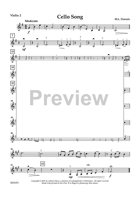 "Cello Song - Violin 2" Sheet Music by M. L. Daniels