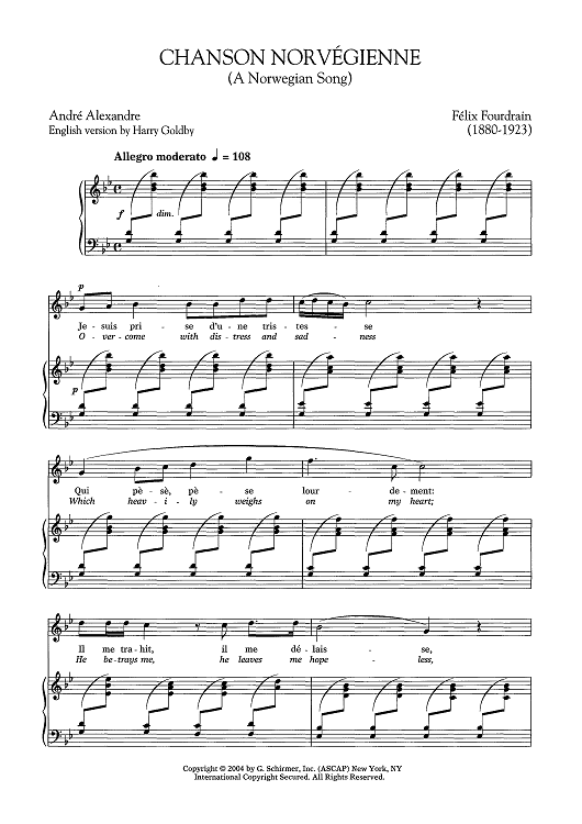 Digital Sheet Music for Chanson Norvégienne (A Norwegian Song) by Félix Fourdrain scored for Piano/Vocal/Chords; id:466740