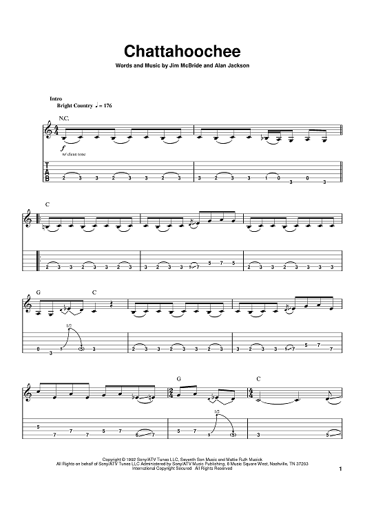 Digital Sheet Music for Chattahoochee by Jim McBride, Al Jackson Jr scored for Guitar Tab; id:374340