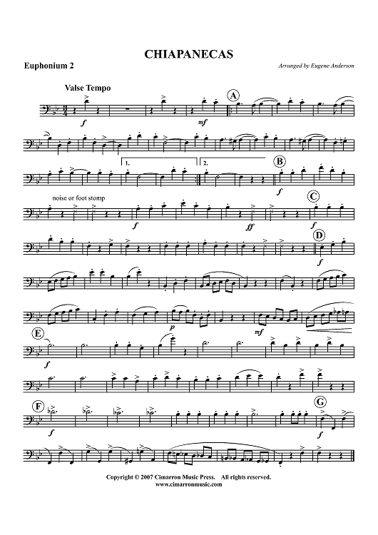 Digital Sheet Music for Chiapanecas - Euphonium 2 BC/TC by Eugene Anderson, Traditional scored for Tuba Quartet; id:416804