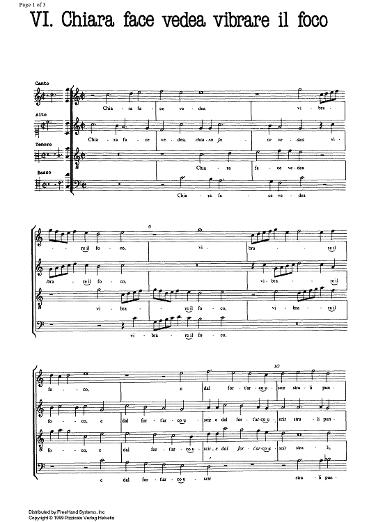 Digital Sheet Music for Chiara face vedea vibrare il foco by , Marc' Antonio Pordenon scored for SATB Choir; id:333785