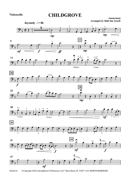 Digital Sheet Music for Childgrove - Violoncello by Anonymous, Shirl Jae Atwell scored for String Orchestra; id:462062