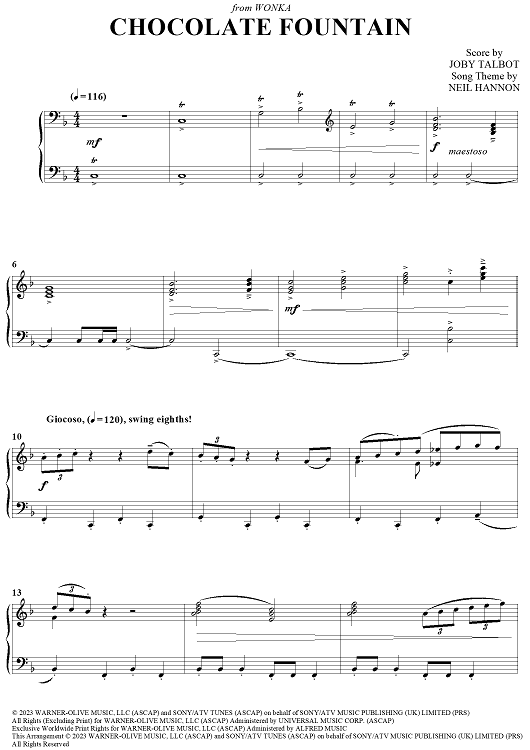 Digital Sheet Music for Chocolate Fountain - from Wonka by Neil Hannon scored for Piano Solo; id:501501