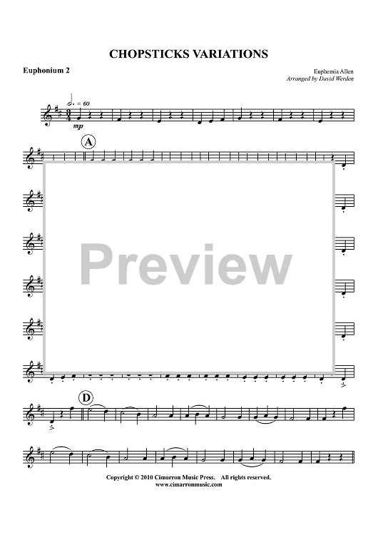 Digital Sheet Music for Chopsticks Variations - Euphonium 2 BC/TC by David Werden, Euphemia Allen scored for Tuba Quartet; id:427443